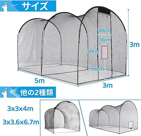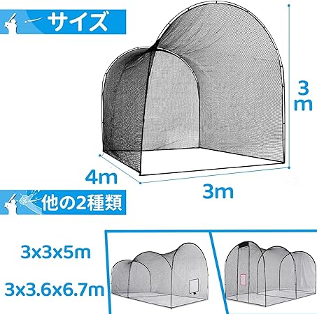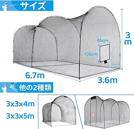 野球バッティングケージ 軟式硬式 3x3.5x6.7m