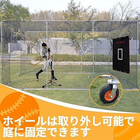 野球バッティングケージ 3x2.5x5m ホイール付き