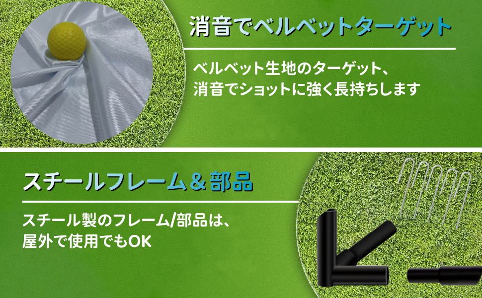 - ゴルフネットの構造と素材:ナイロンとポリエチレン(PE)を使用しており、これらの素材は耐候性に優れており、屋外での使用にも適しています。ナイロンは柔軟性と耐摩耗性があり、PEは高い引張強度と耐久性を提供します。