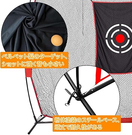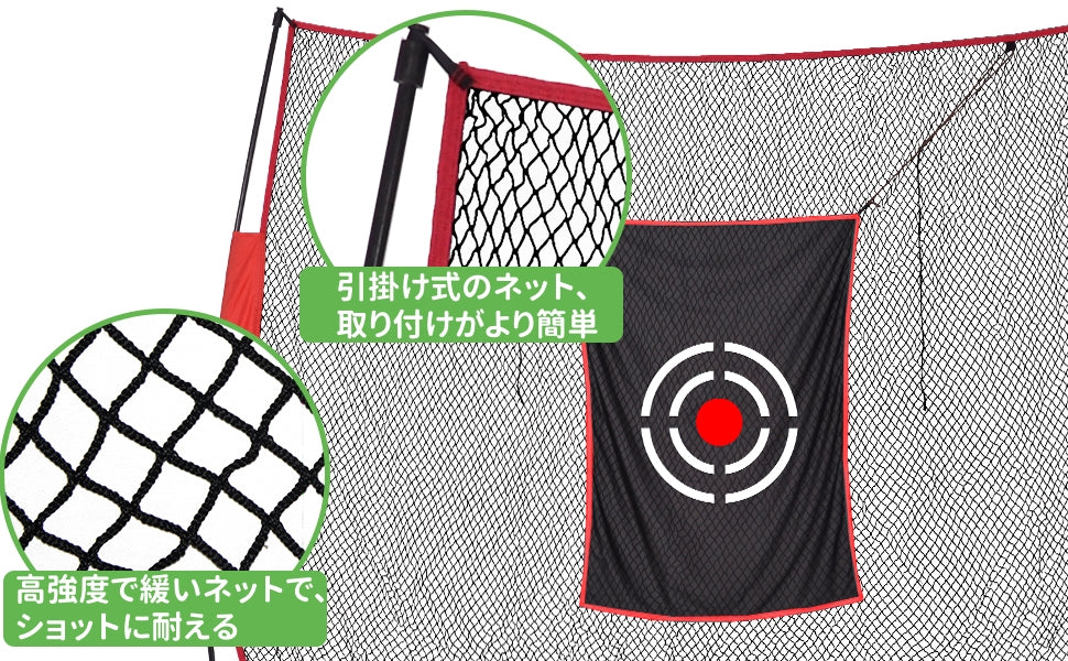 - ゴルフスキルを向上させる:オープンサイズは2.4m(幅)x2.1m(高さ)。本店のゴルフネットは、ターゲットが付き、ドライブやスイングなど、様々なヒットの練習ができます。ヒット後、ボールを集中し、ボールが散らばることがないため、ボールを拾う時間を節約し、練習をよう効率的にすることができます。