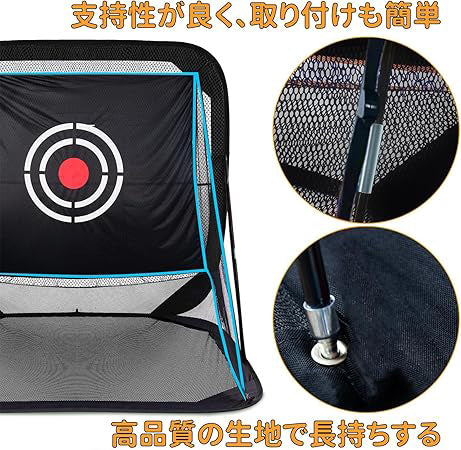 - 衝撃吸収性が高いゴルフネット:継続的に設計・実践されてきた本店のゴルフネットは衝撃吸収性があり、全力ヒットしても、ボールがしっかり受け止めて足に戻ります。ボールが物に当たる心配がないので、安心してゴルフを練習できます。