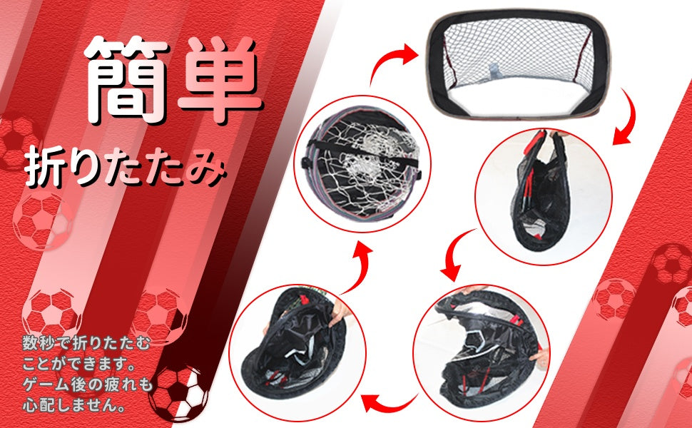 折りたたみ式なので、数秒で収納することができます、どこに持ち歩いても便利です、どこでもサッカーを堪能するのが可能です