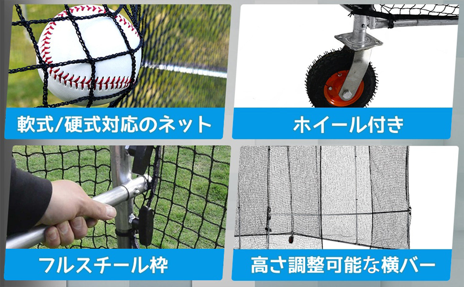 丈夫な材料を用いられるため、軟式及び硬式ボールのいずれも対応できます、ネットが破れる心配など必要ありません