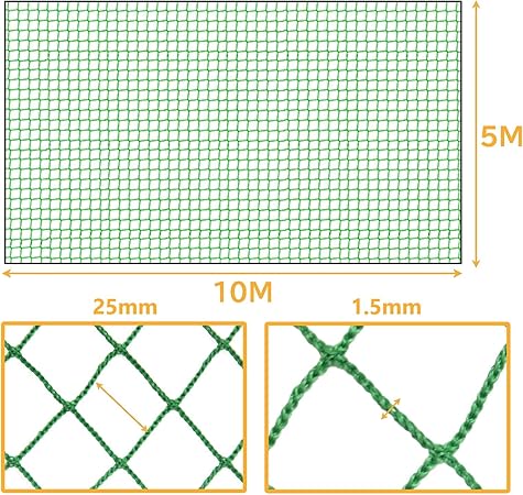 - 多目的ネット:このネットは、養生ネット、ガーデニングネット、防鳥防獣ネットとして、建築現場やDIYプロジェクト、庭の作業など、さまざまな場面で幅広く活躍します。作業現場での安全性やプライバシー保護にも効果的です。ガーデニングや農業で使用されることもあります。植物のサポートやクリーピング植物のための絡まり防止ネットとして利用されることがあります。